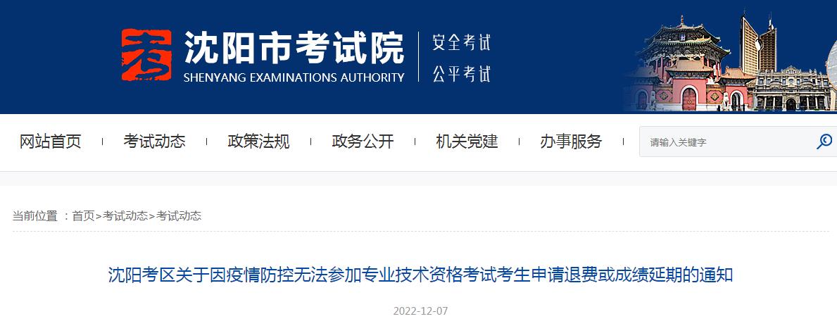 沈陽考區(qū)關(guān)于因疫情防控無法參加專業(yè)技術(shù)資格考試考生申請退費或成績延期的通知