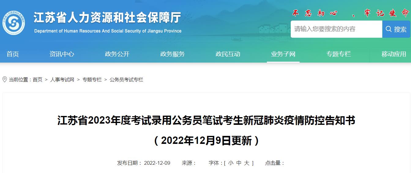 在寧參加江蘇省2023年度考試錄用公務(wù)員筆試考生新冠肺炎疫情防控補(bǔ)充告知(2022年12月9日發(fā)布)