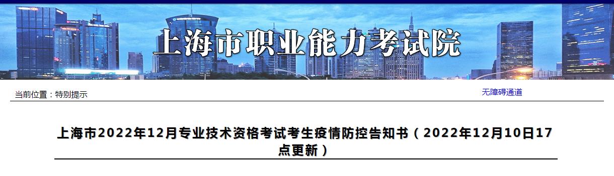 上海市2022年12月專業(yè)技術資格考試考生疫情防控告知書