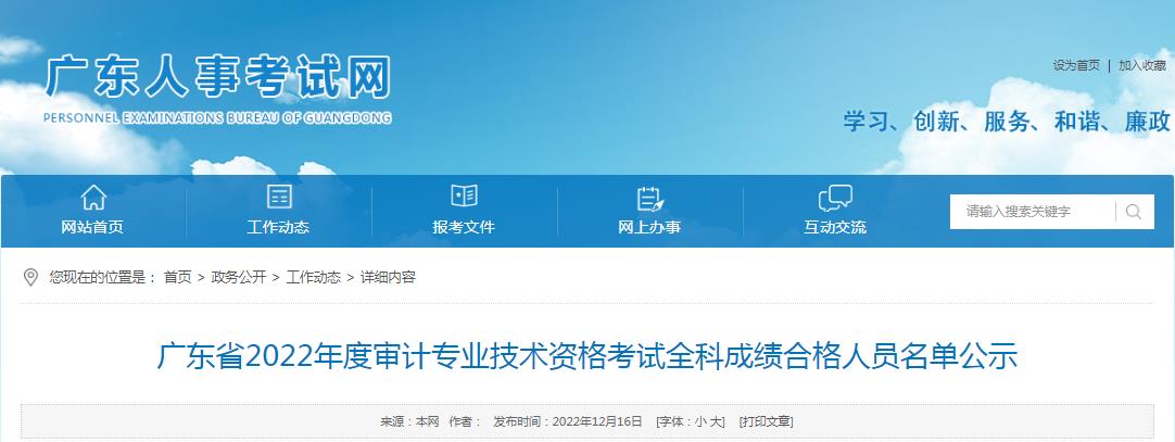 廣東省2022年度審計(jì)專(zhuān)業(yè)技術(shù)資格考試全科成績(jī)合格人員名單公示